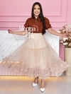 Quem não se sente poderosa usando uma saia midi? Sinônimo de formalidade, esta peça é ideal para todos os tipos de silhuetas e estilos! Perfeita para diversas ocasiões, seja durante o dia ou a noite! A saia midi te entrega um visual super feminino e despojado, para você sair do básico do dia a dia e se sentir incrível por onde andar! Seu corte e caimento valorizam a silhueta, com ela é possível compor looks despojados {com blusas e bodys}, até mais elegantes {com camisas de manga longa}. Para ficar ainda mais arrasador, aposte em um belo salto! A saia midi Diamante possui a modelagem estilo reto, é toda confeccionada em Tecido Tule com Forro {tecido encorpado, com elastano} e possui: forro em todo comprimento, cós em elástico, Tule trazendo um charme e elegância! Beleza e modelagem de arrancar suspiros!