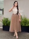 Quem não se sente poderosa usando uma saia midi? Sinônimo de formalidade, esta peça é ideal para todos os tipos de silhuetas e estilos! Perfeita para diversas ocasiões, seja durante o dia ou a noite! A saia midi te entrega um visual super feminino e despojado, para você sair do básico do dia a dia e se sentir incrível por onde andar! Seu corte e caimento valorizam a silhueta, com ela é possível compor looks despojados {com blusas e bodys}, até mais elegantes {com camisas de manga longa}. Para ficar ainda mais arrasador, aposte em um belo salto! A saia midi possui a modelagem estilo fluido, é toda confeccionada em Tecido Tule com Forro {tecido encorpado, com elastano} e possui: forro em todo comprimento, cós em elástico, Tule trazendo um charme e elegância! Beleza e modelagem de arrancar suspiros!